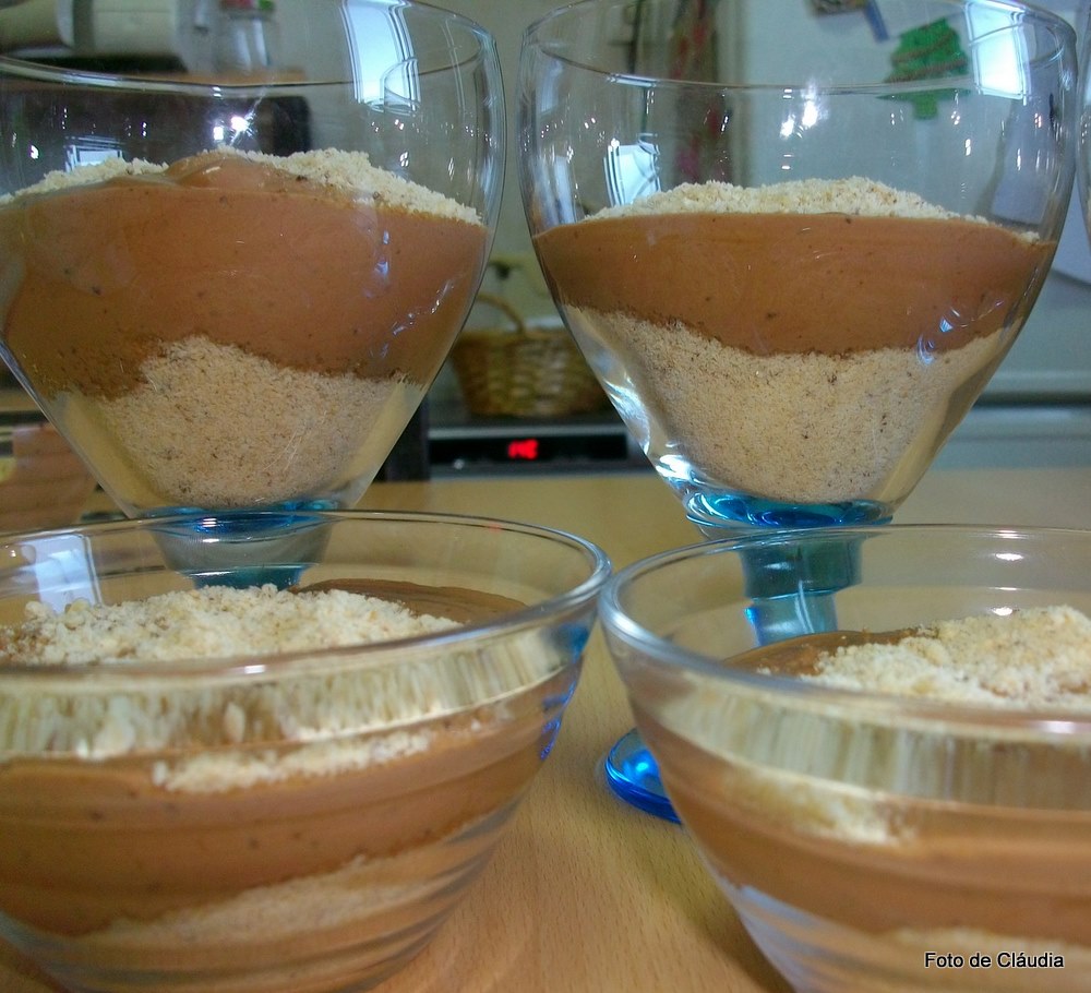 Claro que, à medida que se vai comendo, deve misturar-se um pouco do creme de chocolate com a base.